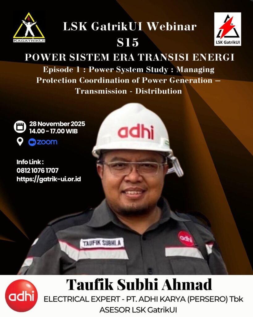 Kami dengan senang hati mengundang Anda untuk hadir bergabung dalam webinar Seri KagatrikUI, KagatrikUI organisasasi merupakan wadah komunitas alumni Teknik Tenaga Listrik DTE FTUI yang peduli akan ketenagalistrikan dan energi di Indonesia.
